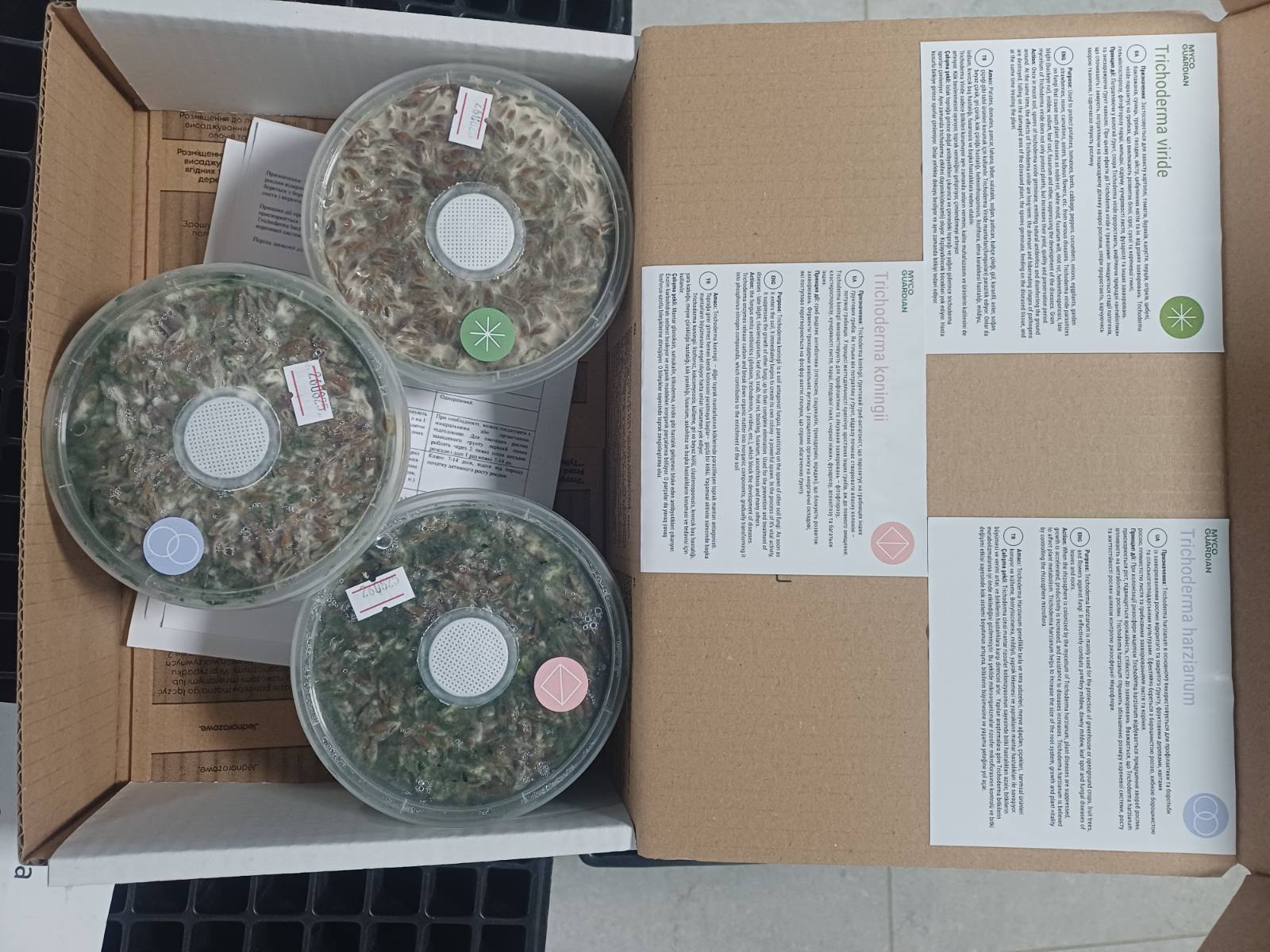 Принцип дії: при потраплянні у вологий ґрунт, спори Trichoderma Viride проростають, виділяючи природні антибіотики та знезаражуючи навколишній ґрунт. Ефект дії Trichoderma Viride довготривалий: знищуються сплячі та зимуючі стадії патогенів, а при потраплянні на уражену ділянку рослини, спори проростають, харчуючись ураженою тканиною, і одночасно лікують рослину.